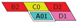 Encoding. The current value of the counter is encoded in standard binary with the most significant bit to the left. Each bit is encoded into a specific folding of the modules A and C of the molecule in the rows corresponding to a zag pass: namely folding A0 and C0 for 0, and A1 and C1 for 1. During the zig pass, the value of the carry is encoded by the position of the molecule when it starts to fold Module A or C: if Module A or C starts to fold in the top row; if Module A or C starts to fold from the bottom row.