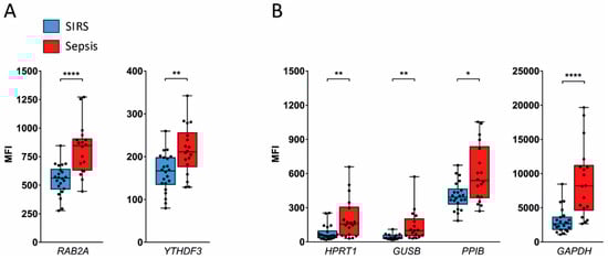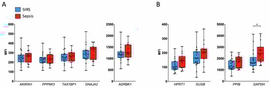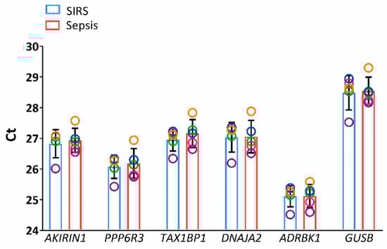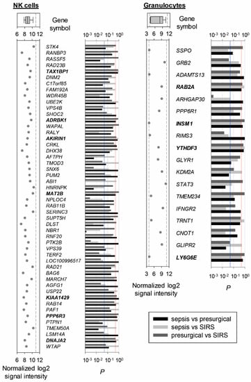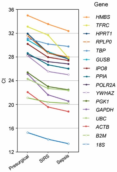2.2. Reference Gene Discovery in Presurgical, SIRS, and Sepsis Patients