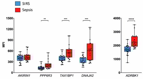 - Miller, R.R., 3rd; Lopansri, B.K.; Burke, J.P.; Levy, M.; Opal, S.; Rothman, R.E.; D’Alessio, F.R.; Sidhaye, V.K.; Aggarwal, N.R.; Balk, R.; et al. Validation of a Host Response Assay, SeptiCyte LAB, for Discriminating Sepsis from Systemic Inflammatory Response Syndrome in the ICU. Am. J. Respir. Crit. Care Med. 2018, 198, 903–913. [Google Scholar] [CrossRef]