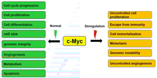 - Yoshida, G.J. Emerging roles of myc in stem cell biology and novel tumor therapies. J. Exp. Clin. Cancer Res. 2018, 37, 173. [Google Scholar] [CrossRef]