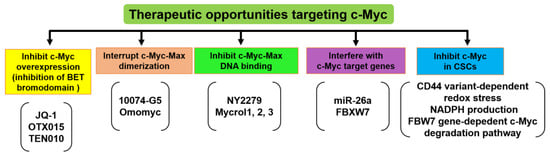 Elbadawy M, Usui T, Yamawaki H, Sasaki K. Emerging Roles of C-Myc in Cancer Stem Cell-Related Signaling and Resistance to Cancer Chemotherapy: A Potential Therapeutic Target Against Colorectal Cancer. International Journal of Molecular Sciences. 2019; 20(9):2340. https://doi.org/10.3390/ijms20092340