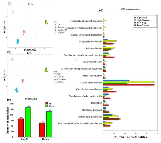 2.2. Metabolite Profiles of Rice Leaves in Response to Nitrogen Availability