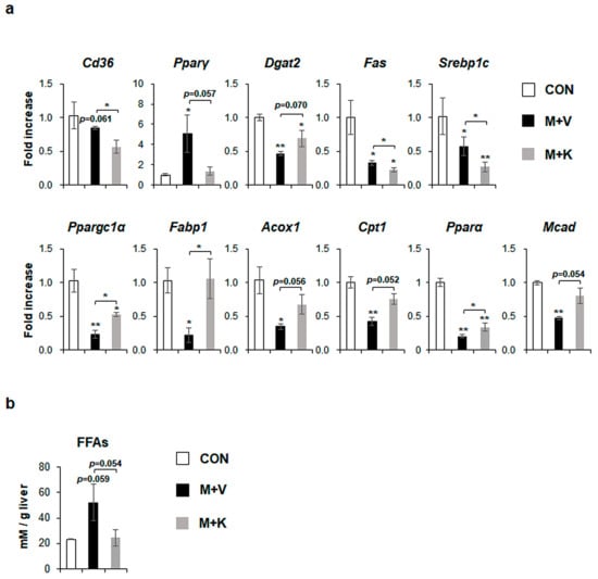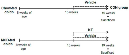 2.3. KT Reduces Lipotoxicity by Decreasing Hepatic FFA Level in MCD-Treated db/db Mice