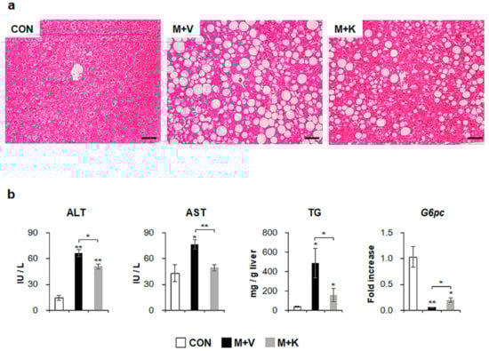 2.1. KT Attenuates Hepatic Damage Caused by MCD Diet in db/db Mice