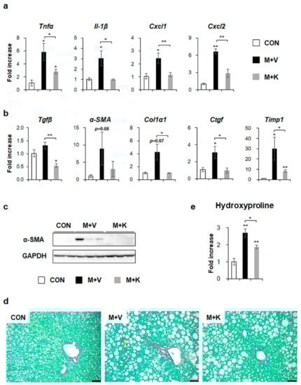 - Fujii, H.; Kawada, N. Inflammation and fibrogenesis in steatohepatitis. J. Gastroenterol. 2012, 47, 215–225. [Google Scholar]