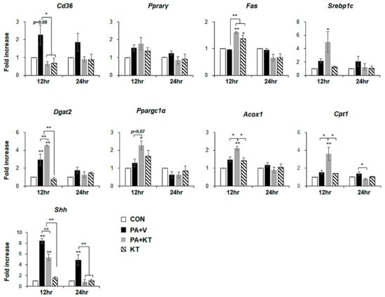 2.6. KT Prevents Palmitate-Induced Steatosis in Primary Hepatocytes