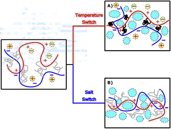 - Siband, E.; Tran, Y.; Hourdet, D. Thermoresponsive interpolyelectrolyte complexation: Application to macromolecular assemblies. Macromolecules 2011, 44, 8185–8194. [Google Scholar] [CrossRef]