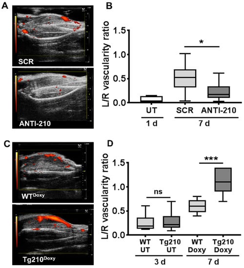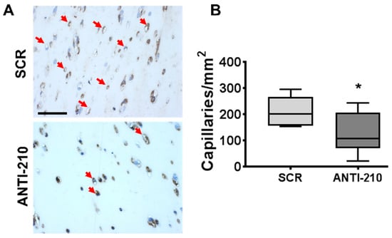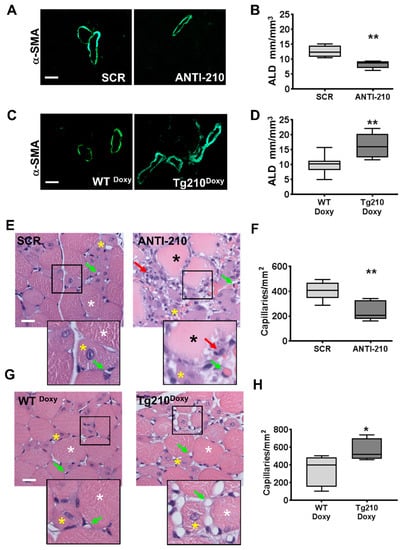 2.3. MiR-210 Expression Increases Arteriolar Length Density and Capillary Density after Hindlimb Ischemia