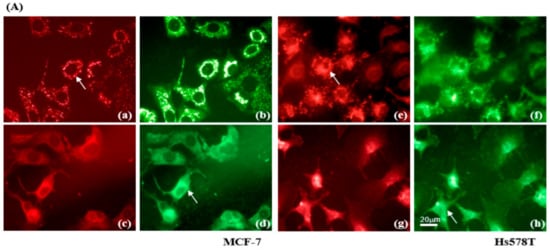 Two breast cancer cell lines, MCF-7 (American Type Culture Collection; ATCC, Manassas, VA USA), HTB-22; caspase-3-deficient) and Hs578T (ATCC HTB-126; p53-deficient), and two non-tumorigenic human breast epithelial cell lines, HBL-100 (ATCC HTB-124) and H184B5F5/M10 (Bioresource Collection and Research Center, Hsinchu, Taiwan, BCRC-60197), were cultured in phenol red-free DMEM containing non-essential amino acids, 0.1 mM sodium pyruvate, 10% fetal bovine serum, 2 mM L-glutamine, 100 mg/mL streptomycin, and 100 units/mL penicillin (Biosource, Rockville, MD, USA). Cells were cultured at a constant temperature of 37 °C in a 5% carbon dioxide humidified atmosphere.