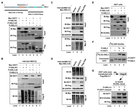 2.1. OGT1 Stabilized NSL3 through O-GlcNAcylating Its C-Terminus