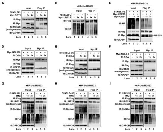 2.3. O-GlcNAcylation of NSL3 by OGT1 Was Tightly Associated with UBE2S-Mediated Ubiquitin-Degradation Pathway