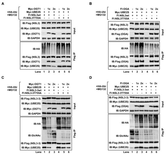 2.5. O-GlcNAcylation of NSL3 Thr755 Site by OGT1 Was Connected to the NSL3 Stability