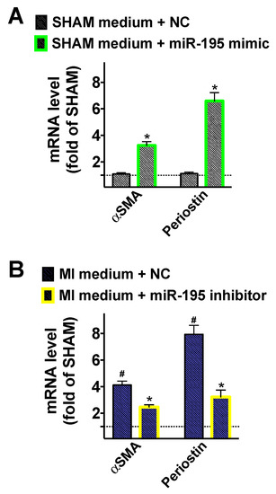 Moreover, we verified the mechanistic role of miR-195 in the activation of cardiac fibroblasts by using specific miR mimics (Figure 5A) and inhibitors (Figure 5B).