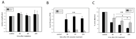 Figure 1B). Interestingly, no DNA repair was found even 24 after removal of the arsenite from the cell culture. The effect of arsenic also impacted the number of attached cells over the observed time period after sodium arsenite treatment. Cell numbers also decreased in