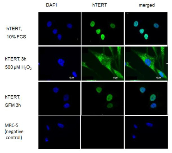 17], the serum-free condition was not able to exclude hTERT from the nucleus and was indistinguishable from serum-containing media condition (