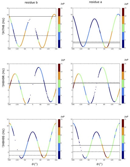 - Stenutz, R.; Carmichael, I.; Widmalm, G.; Serianni, A.S. Hydroxymethyl group conformation in saccharides: Structural dependencies of 2JHH, 3JHH, and 1JCH spin-spin coupling constants. J. Org. Chem. 2002, 67, 949–958. [Google Scholar] [CrossRef]