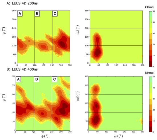 - Turupcu, A.; Oostenbrink, C. Modeling of Oligosaccharides within Glycoproteins from Free-Energy Landscapes. J. Chem. Inf. Model. 2017, 57, 2222–2236. [Google Scholar] [CrossRef]