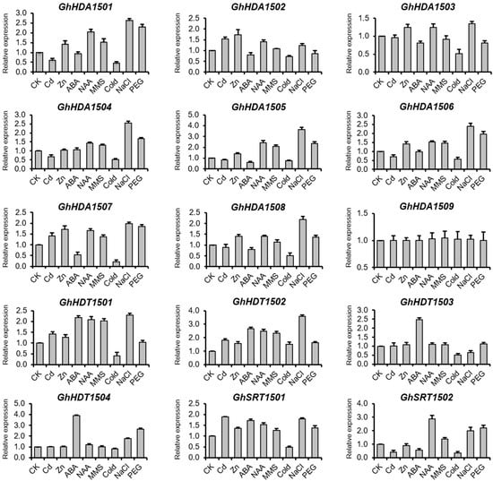 Histone Deacetylase (HDAC) Gene Family in Allotetraploid Cotton and Its Diploid Progenitors: In Silico Identification, Molecular Characterization, and Gene Expression Analysis under Multiple Abiotic Stresses, DNA Damage and Phytohormone Treatments