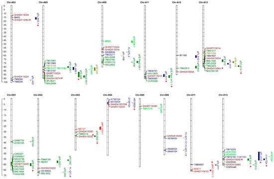 2.6. Co-Localization of GhHDACs with Quantitative Trait Loci and Single-Nucleotide Polymorphisms of Fiber-Related Traits