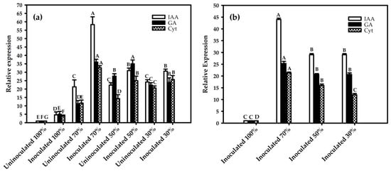 - Barnawal, D.; Bharti, N.; Pandey, S.S.; Pandey, A.; Chanotiya, C.S.; Kalra, A. Plant growth-promoting rhizobacteria enhance wheat salt and drought stress tolerance by altering endogenous phytohormone levels and TaCTR1/TaDREB2 expression. Physiol. Plant. 2017, 161, 502–514. [Google Scholar] [CrossRef] [PubMed]