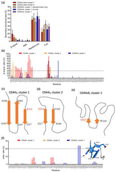 2.3. Phe215 Displayed a High Tendency to Form β-Strands in CD44s and CD44v6, Whereas the CD44v6 Stem Region Exhibited Fewer β-Sheets than CD44s Did