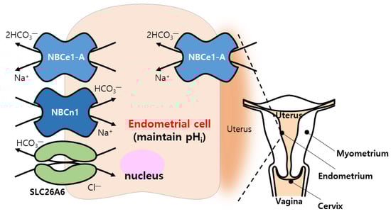 | NBCe1-A | Luminal and grandular epithelial cells of uteri | [146] |