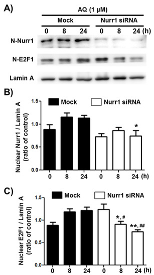 2.3. AQ Enhances the Nuclear Expression of E2F1 in a Nurr1-Dependent Manner