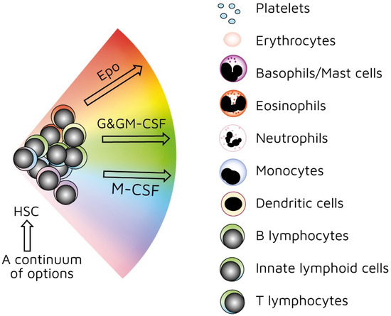 - Brown, G.; Tsapogas, P.; Ceredig, R. The changing face of hematopoiesis: A spectrum of options is available to stem cells. Immunol. Cell Biol. 2018, 96, 898–911. [Google Scholar] [CrossRef]