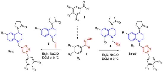 Synthesis of new THQ–isoxazoline (5a-p) and THQ–isoxazole (6a-ab) hybrid compounds.