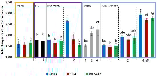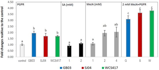 | 2 mM MeJA + G | 0.79 ± 0.15 bc | 1.09 ± 0.07 bc | 1.75 ± 0.17 bc |