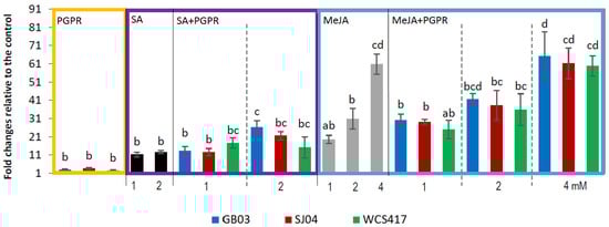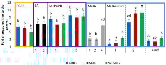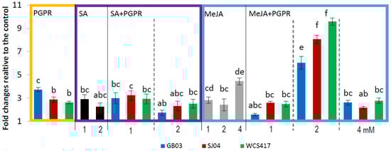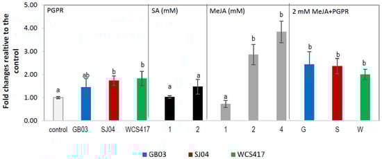 - Vanitha, S.C.; Umesha, S. Pseudomonas fluorescens mediated systemic resistance in tomato is driven through an elevated synthesis of defense enzymes. Biol. Plant 2011, 55, 317. [Google Scholar] [CrossRef]