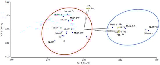 | 1 mM MeJA + W | 0.35 ± 0.07 ab | 0.37 ± 0.04 a | 0.44 ± 0.13 a |