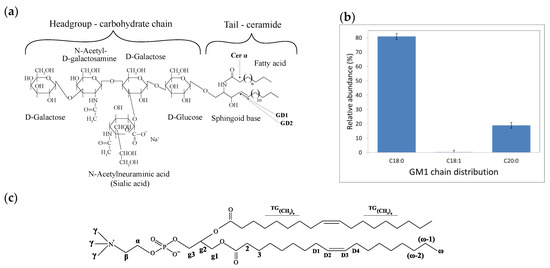 - Reed, R.A.; Shipley, G.G. Properties of ganglioside GM1 in phosphatidylcholine bilayer membranes. Biophys. J. 1996, 70, 1363–1372. [Google Scholar] [CrossRef][Green Version]