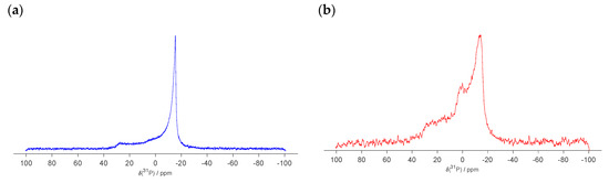 31P NMR spectra of 25 mM DOPC-GM1 mixtures at molar ratios of (a) 90:10 and (b) 65:35. Due to the short measurement time, the spectrum looks noisy for the 65:35 mixture. The measurements were performed at 37 °C.