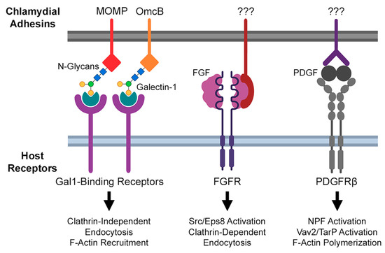 - Kim, J.H.; Jiang, S.; Elwell, C.A.; Engel, J.N. Chlamydia trachomatis co-opts the FGF2 signaling pathway to enhance infection. PLoS Pathog. 2011, 7, e1002285. [Google Scholar] [CrossRef] [PubMed]