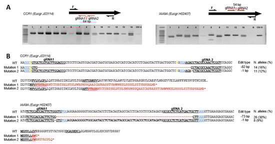 2.1. Genotyping Revealed High Knock-Down Rate in CCR1 but High Knock-out Rate in IAA9A