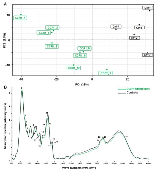 2.2.1. Combination of FTIR Spectroscopy and Multivariate Analyses of CCR1-Edited Hairy Root Lines