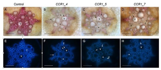 2.2.2. Histochemical Characterization of CCR1-Edited Hairy Root Lines