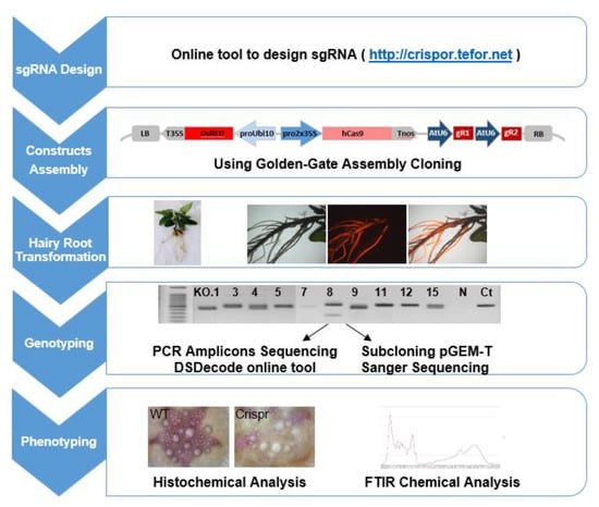 Dai, Y.; Hu, G.; Dupas, A.; Medina, L.; Blandels, N.; San Clemente, H.; Ladouce, N.; Badawi, M.; Hernandez-Raquet, G.; Mounet, F.; et al. Implementing the CRISPR/Cas9 Technology in Eucalyptus Hairy Roots Using Wood-Related Genes. Int. J. Mol. Sci. 2020, 21, 3408. https://doi.org/10.3390/ijms21103408