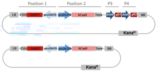 - Ma, X.; Zhang, Q.; Zhu, Q.; Liu, W.; Chen, Y.; Qiu, R.; Wang, B.; Yang, Z.; Li, H.; Lin, Y.; et al. A Robust CRISPR/Cas9 System for Convenient, High-Efficiency Multiplex Genome Editing in Monocot and Dicot Plants. Mol. Plant 2015, 8, 1274–1284. [Google Scholar] [CrossRef]