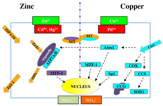 - Dong, G.; Chen, H.; Qi, M.; Dou, Y.; Wang, Q. Balance between metallothionein and metal response element binding transcription factor 1 is mediated by zinc ions (Review). Mol. Med. Rep. 2015, 11, 1582–1586. [Google Scholar] [CrossRef] [PubMed]