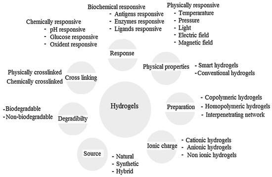 Hydrogels based on the different properties such as source, physical properties, crosslinking, ionic charge, response and degradability Reprinted from [17] with permission from Elsevier.