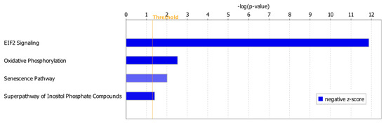 Inhibited canonical pathways in the ICM group. All the inhibited pathways had z-scores smaller than −2.0 (Supplementary Table S2).