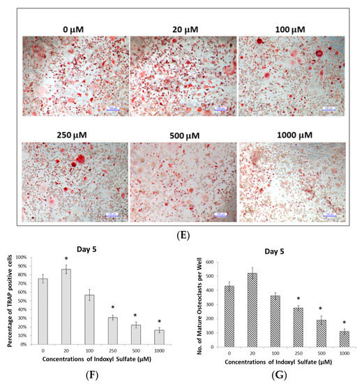 - Mozar, A.; Louvet, L.; Godin, C.; Mentaverri, R.; Brazier, M.; Kamel, S.; Massy, Z.A. Indoxyl sulphate inhibits osteoclast differentiation and function. Nephrol. Dial. Transplant. 2011, 27, 2176–2181. [Google Scholar] [CrossRef] [PubMed]