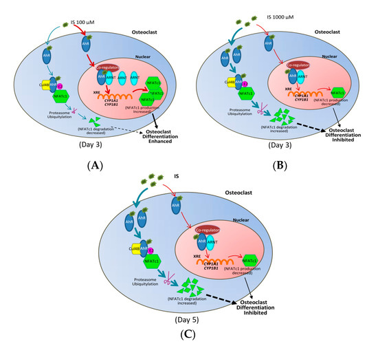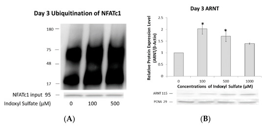 2.5. NFATc1 Ubiquitination and ARNT Expression Depend on IS Concentration