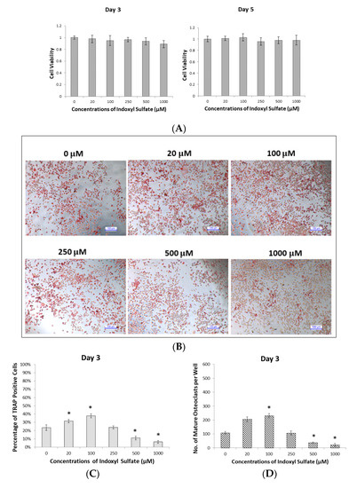 Liu, W.-C.; Shyu, J.-F.; Lim, P.S.; Fang, T.-C.; Lu, C.-L.; Zheng, C.-M.; Hou, Y.-C.; Wu, C.-C.; Lin, Y.-F.; Lu, K.-C. Concentration and Duration of Indoxyl Sulfate Exposure Affects Osteoclastogenesis by Regulating NFATc1 via Aryl Hydrocarbon Receptor. Int. J. Mol. Sci. 2020, 21, 3486. https://doi.org/10.3390/ijms21103486