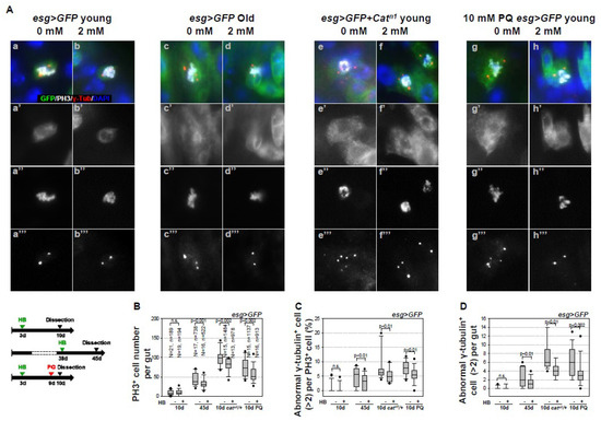 - Park, J.S.; Pyo, J.H.; Na, H.J.; Jeon, H.J.; Kim, Y.S.; Arking, R.; Yoo, M.A. Increased centrosome amplification in aged stem cells of the Drosophila midgut. Biochem. Biophys. Res. Commun. 2014, 450, 961–965. [Google Scholar] [CrossRef]