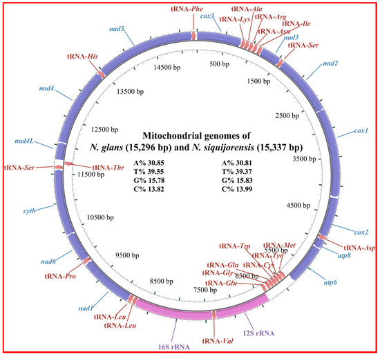 Gene map of the mt genomes of N. glans and N. siquijorensis.