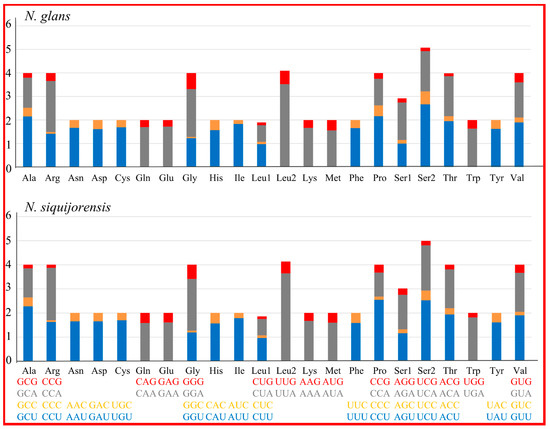 Relative Synonymous Codon Usage (RSCU) of mitochondrial genomes for N. glans and N. siquijorensis.