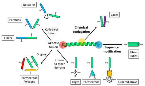 - Park, W.M.; Bedewy, M.; Berggren, K.K.; Keating, A.E. Modular assembly of a protein nanotriangle using orthogonally interacting coiled coils. Sci. Rep. 2017, 7, 10577. [Google Scholar] [CrossRef]